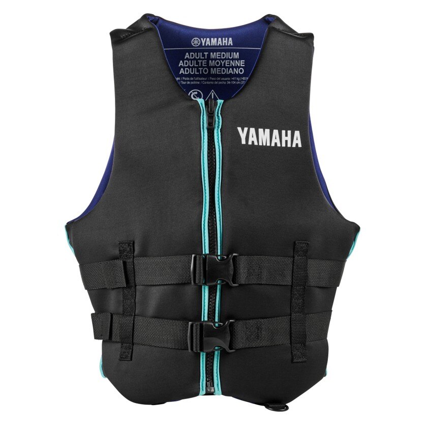 Canadian Coast Guard approved. Comfortable neoprene construction. Durable front-zip entry. Adjustable straps with side-release buckles for additional support and security.