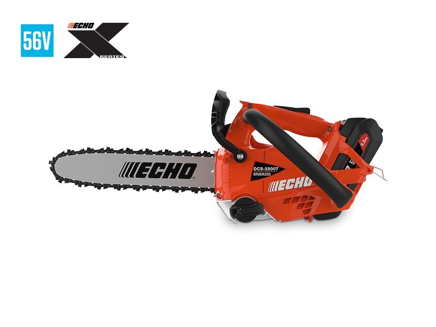 BATTERY CONVENIENCE, ECHO POWERBrushless motor For superior, gas-like power and performance Easy-access, internal debris screen Prevents wood chips from entering motor and electronics Drop-prevention lanyard hook Increases operator safety in a tree or bucket MAXOUT™ technology Ensures maximum power output for the life of the battery charge Metal bumper spike Improves user control and leverage Molded-in lanyard hook Provides a convenient location Patented quickdraw harness ring For easy attaching and detaching Available in 12 in. bar length For larger limbing applications |