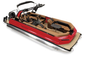 • Sport Edition including premium upholstery textured vinyl and LED lighting on floor, bimini top, pontoon logs, speakers, and fixed cup holders