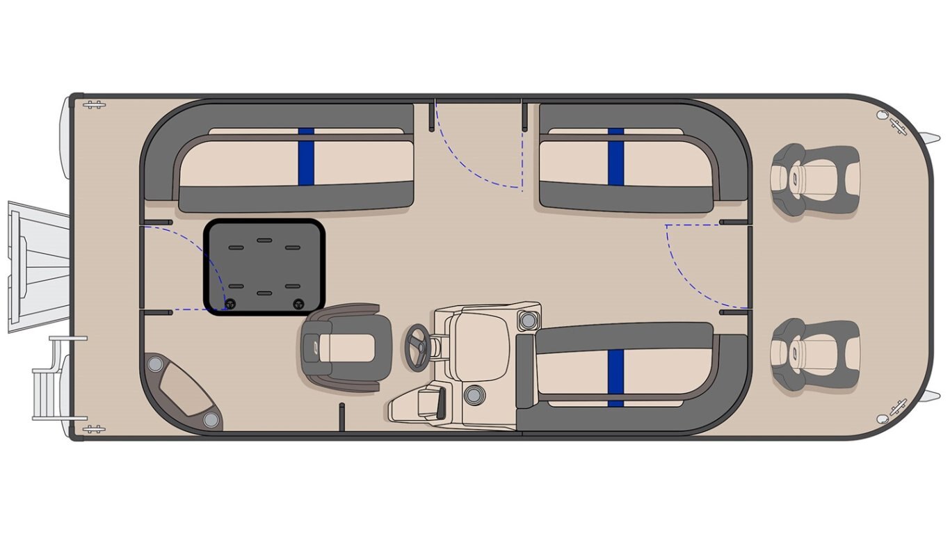 Graphic package includes: Blue metallic stripe all around the pontoon
