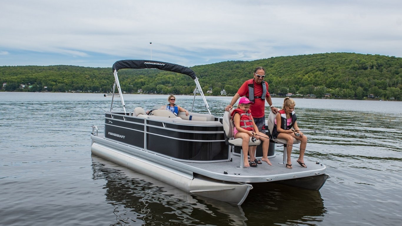 Black Edition includes: Black painted railing, black anodized deck bumper, darker upholstery, deluxe captain's chair, 3D Princecraft® black chrome logo on both sides and front door