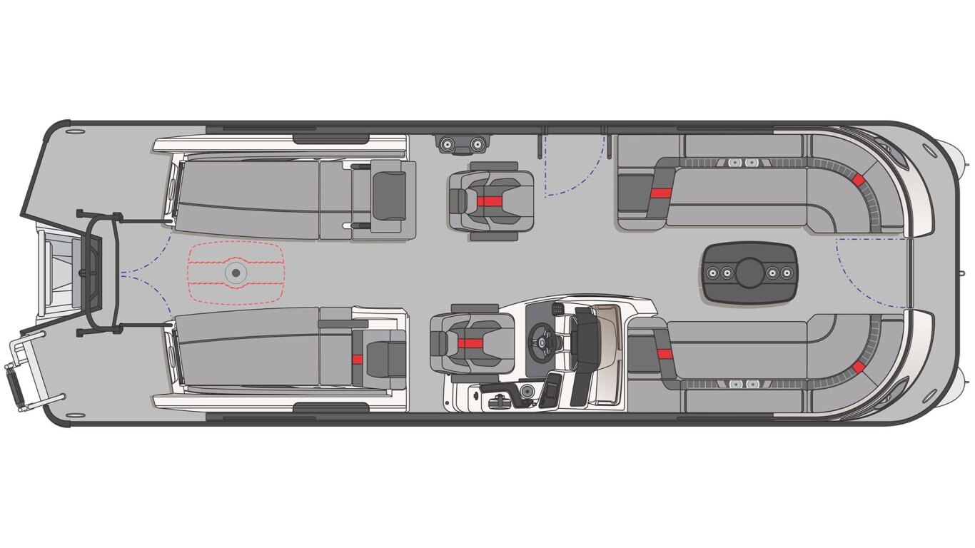 • Sport Edition (color match accent) including premium upholstery textured vinyl, LED lighting on floor, bimini top, pontoon logs, speakers, and fixed cup holders