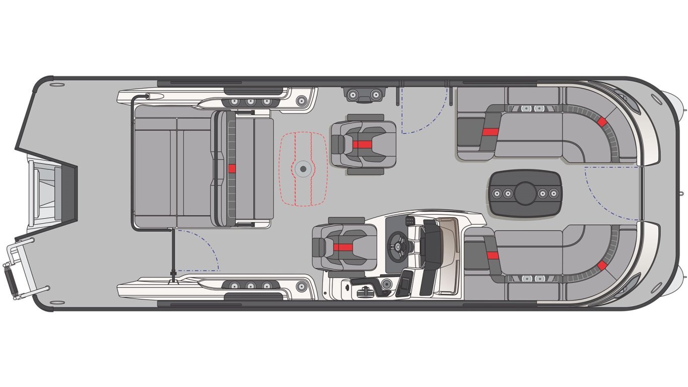 • Sport Edition (color match accent) including premium upholstery textured vinyl, LED lighting on floor, bimini top, pontoon logs, speakers, and fixed cup holders