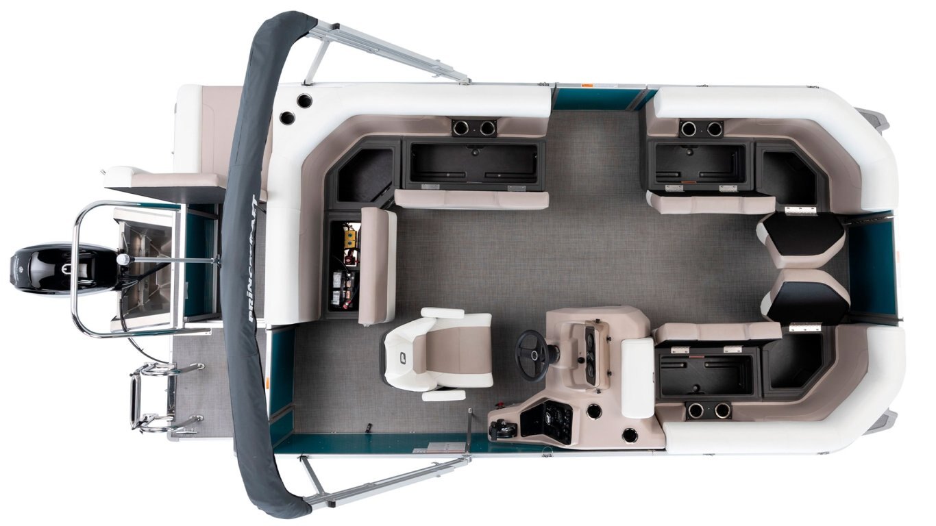• Traditional Edition including 3D Princecraft® black chrome logo on both sides and front door, deluxe driver seat, LED light under driver console and furniture, superior steering wheel, docking lights and colour accent in the standard upholstery only